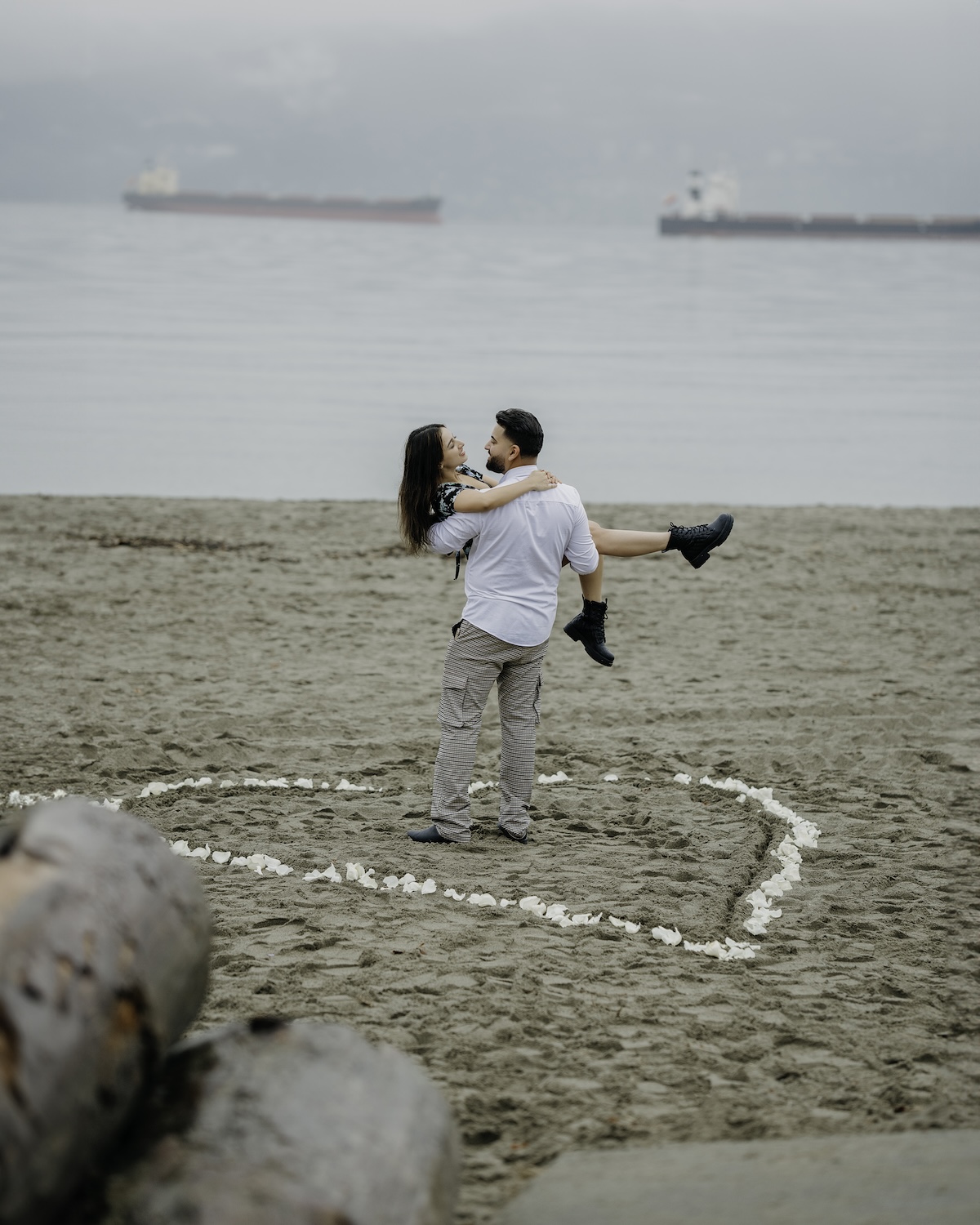 A Romantic Seaside Affair: Aayush and Jasmine’s Unforgettable Beach Proposal inVancouver, BC