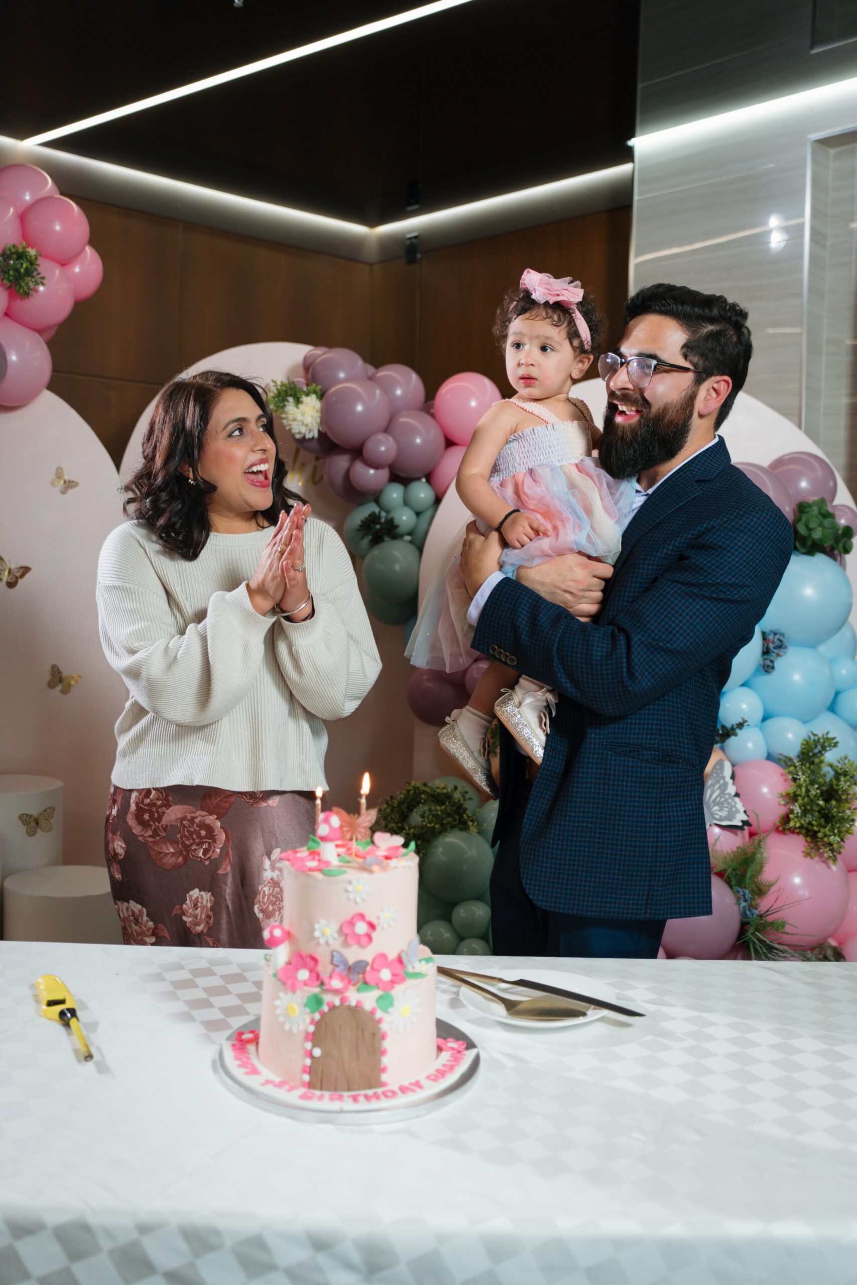 As the doors swung open, Raahi made a grand entrance, cradled in the arms of her parents. The room echoed with cheers and applause as the birthday girl made her way into the heart of the celebration. The candid shots captured the sheer delight on Raahi’s face and the overwhelming joy of her loved ones.