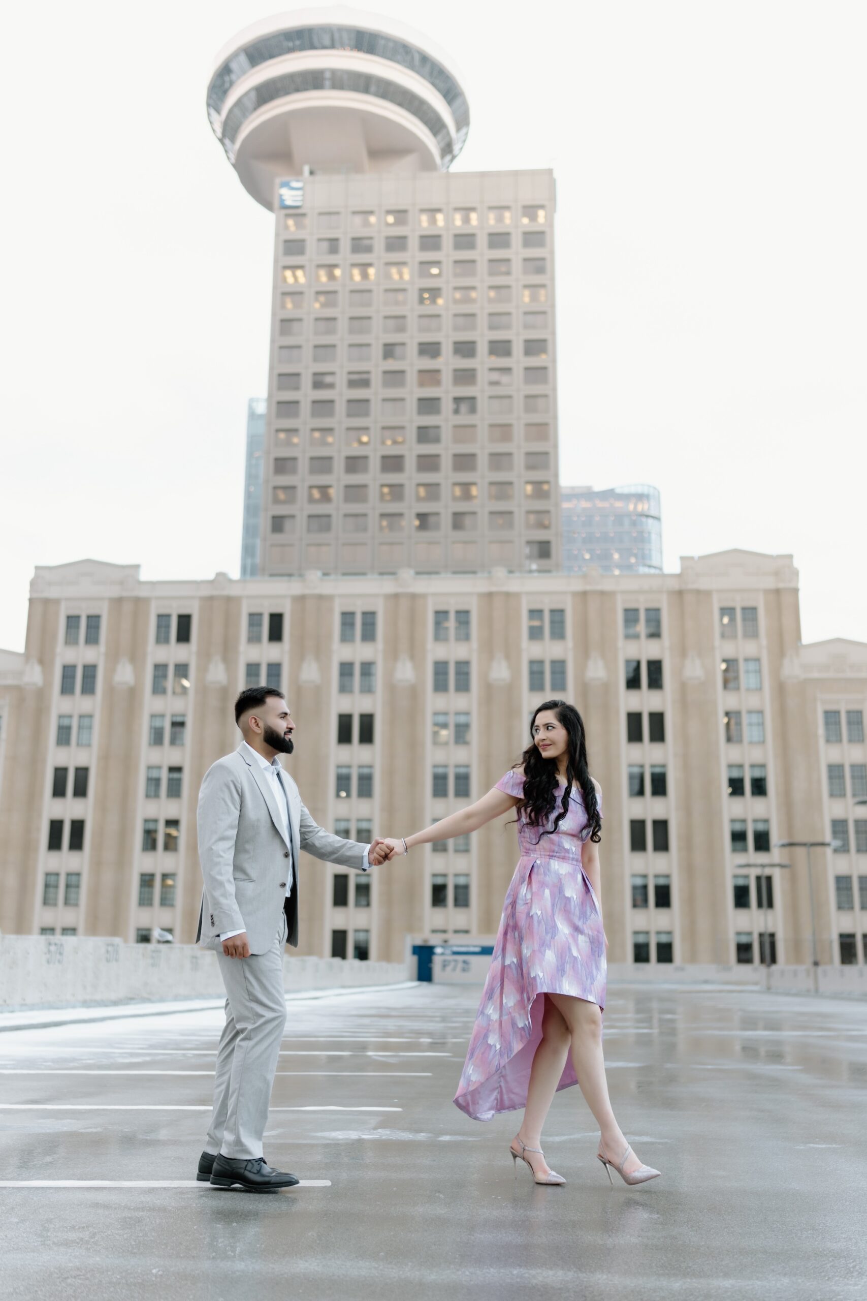 Welcome to the enchanting world of rooftop parking lot photoshoots in Downtown Vancouver, BC, brought to you by The Saga Photos! In this blog, we’ll explore two unique and picturesque locations that serve as the perfect backdrop for engagement sessions, music videos, proposals, pre-wedding shoots, and fashion photography.